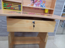- Սեղանի ներքևի հատվածում առկա է դարակ՝ բանալիով, որտեղ ձեր երեխան կարող է տեղավորել գրքեր և տետրեր։